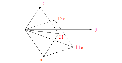 勵(lì)磁電流Im由關(guān)系式Im=I1e-I2e,從向量圖可得出Im。當(dāng)在轉(zhuǎn)子回路串接靜止式進(jìn)相器的附加電勢(shì)后,轉(zhuǎn)子電流的相位變?yōu)閳D中的I2。由于負(fù)載不變,勵(lì)磁電流Im不變。此時(shí)的電子電流I1由關(guān)系式I1=Im+I2,從向量圖可得出I1,如圖所示。從圖中可以看出I1的功率因數(shù)角和幅值都比I1e小,說(shuō)明電機(jī)的功率因數(shù)有所提高,定子電流有所下降。這正是靜止式進(jìn)相器所要達(dá)到的對(duì)電機(jī)補(bǔ)償?shù)哪康摹?/span>